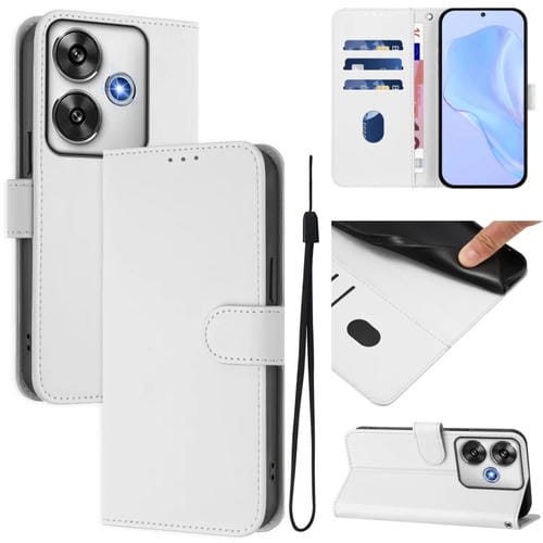 Funda de Piel Sintética con Cordón para Xiaomi Poco F6 5G (Color Blanco)