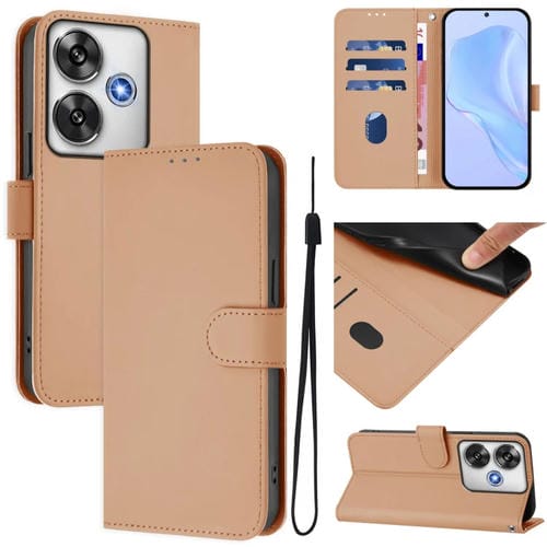 Funda de Piel Sintética con Cordón para Xiaomi Poco F6 5G (Color Piel)