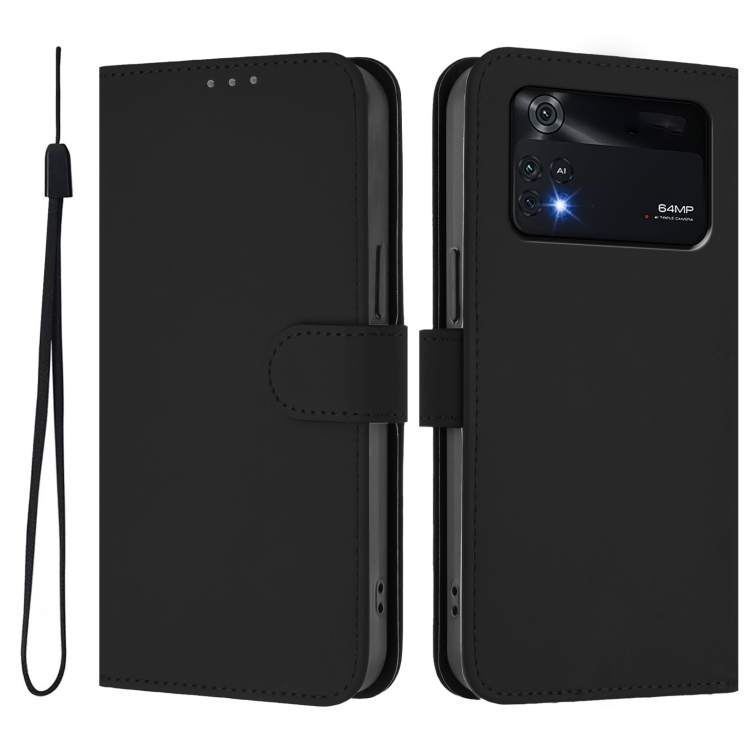 Funda de Piel Sintética con Cordón para Xiaomi Poco M4 Pro 4G (Color Negro)