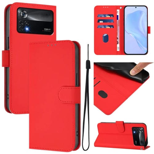 Funda de Piel Sintética con Cordón para Xiaomi Poco X4 Pro 5G (Color Sólido) (Rojo)