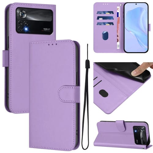 Funda de Piel Sintética con Cordón para Xiaomi Poco X4 Pro 5G (Morado Lavanda)