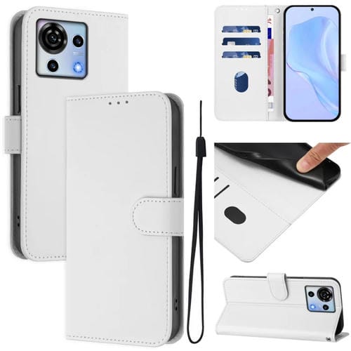 Funda de Piel Sintética con Cordón para ZTE Blade V50 Vita con Tacto Suave (Blanco)