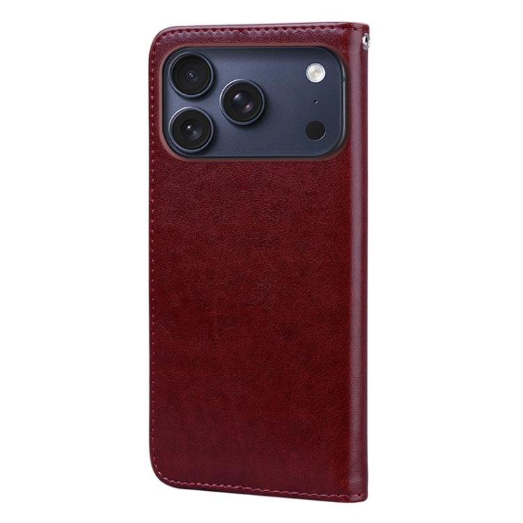 Funda de piel sintética con tapa y relieve rosa para iPhone 17 Pro (marrón)