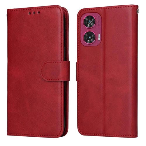 Funda de Piel Sintética con Tapa y Textura Clásica de Becerro para Motorola Edge 50 Fusion (Rojo)