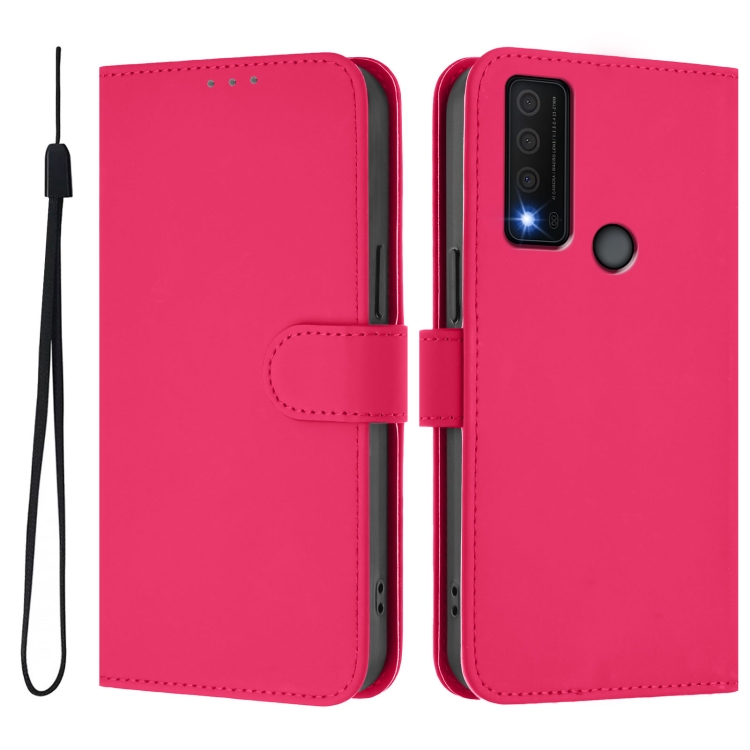 Funda Piel Sintética + Cordón para TCL 30 Xe 5G (Rosa y Rojo)