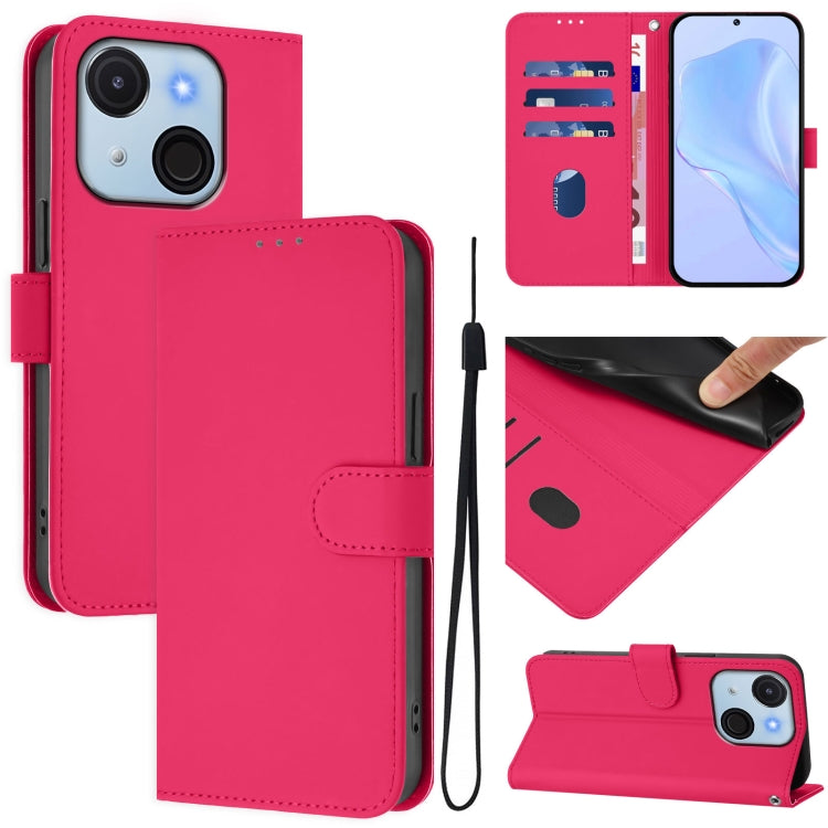 Funda de Piel Sintética con Cordón para Teléfono Itel A50C (Rosa y Rojo)
