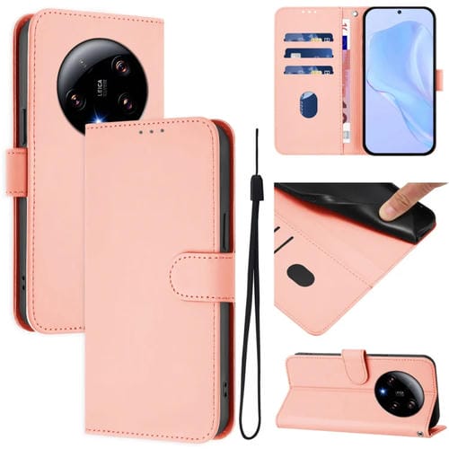 Funda de Piel Sintética de Color Liso con Cordón para Xiaomi 13 Ultra Skin Feel (Rosa)