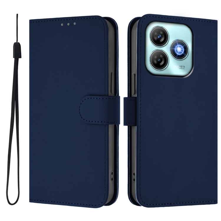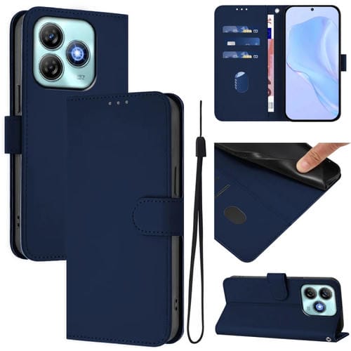 Funda de Piel Sintética con Cordón para ZTE Blade A75 4G (Azul Marino)