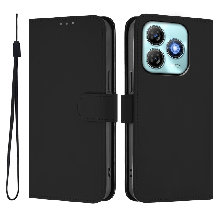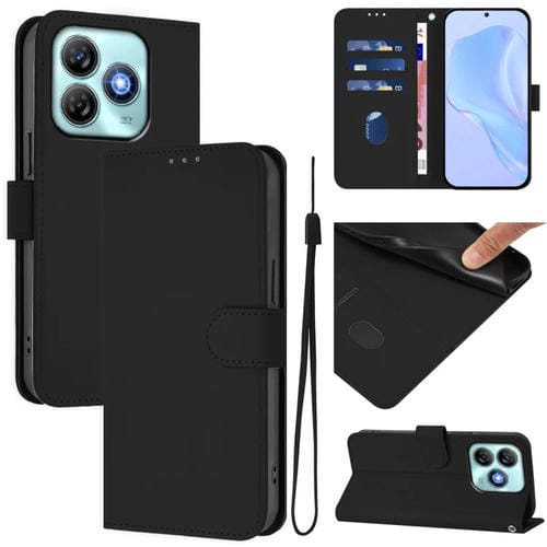 Funda de Piel Sintética para ZTE Blade A75 4G con Cordón (Negro)