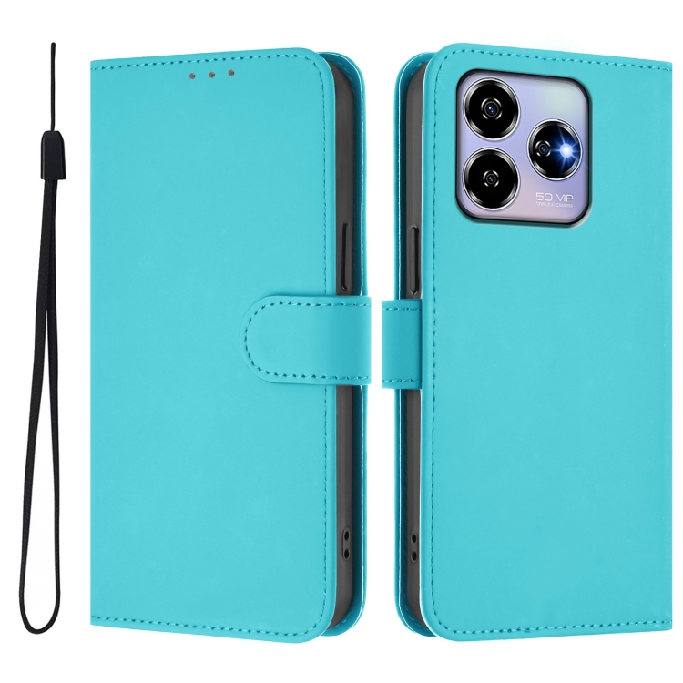 Funda piel sintética con cordón para ZTE Blade V60 4G Axon 60 4G (Azul Lago)