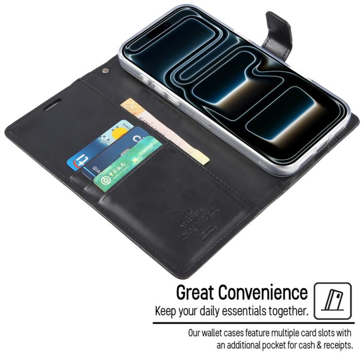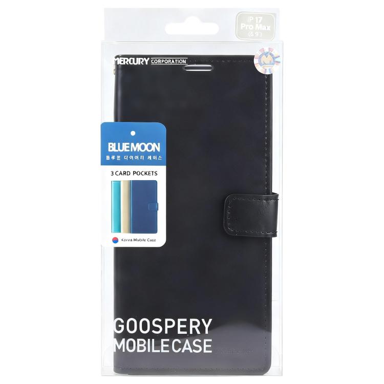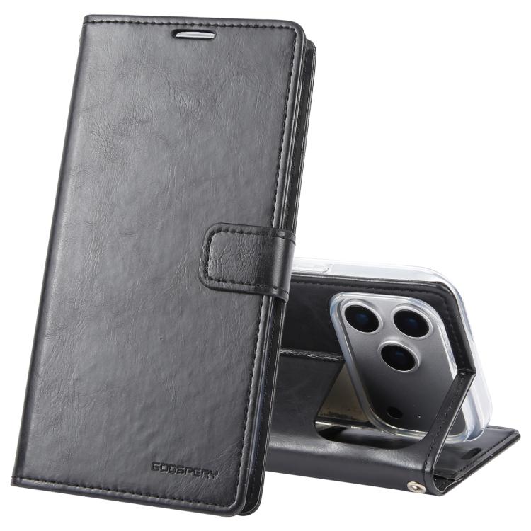 Funda de piel texturizada Crazy Horse GOOSPERY BLUE MOON para iPhone 17 Pro Max (negra)