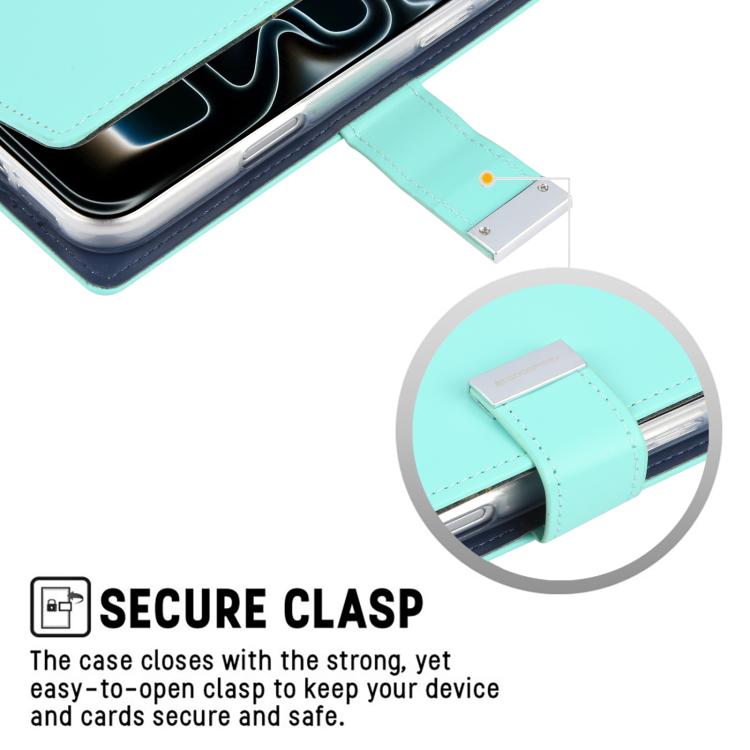 Funda de piel texturizada Crazy Horse GOOSPERY RICH DIARY para iPhone 17 Pro (Verde menta)