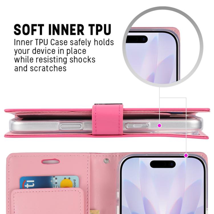 Funda de piel texturizada Crazy Horse para iPhone 17 GOOSPERY RICH DIARY (Rojo rosa)