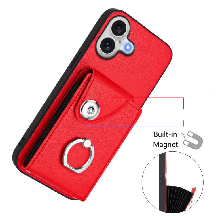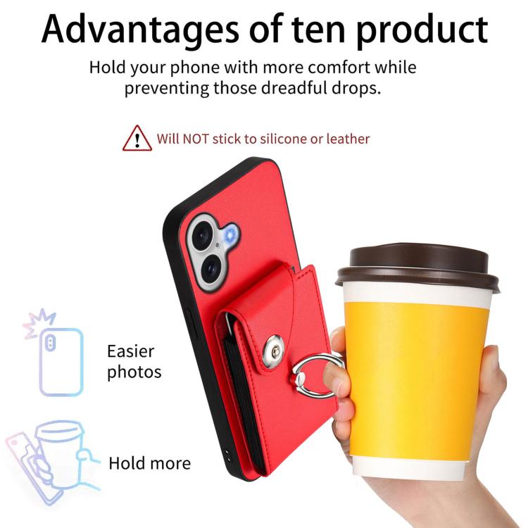 Funda de PU con cordón para iPhone 17, con tarjetero, anillo y soporte (rojo)