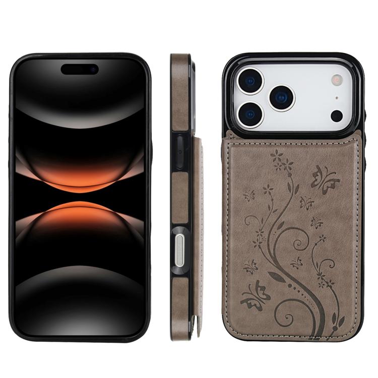 Funda de PU con doble hebilla y estampado de mariposa para iPhone 17 Pro (gris)