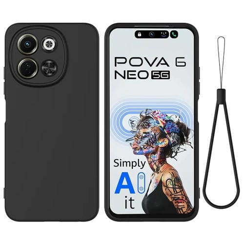 Funda de Silicona Líquida a Prueba de Golpes para Tecno Spark 30 5G y Pova 6 Neo 5G (Negro)