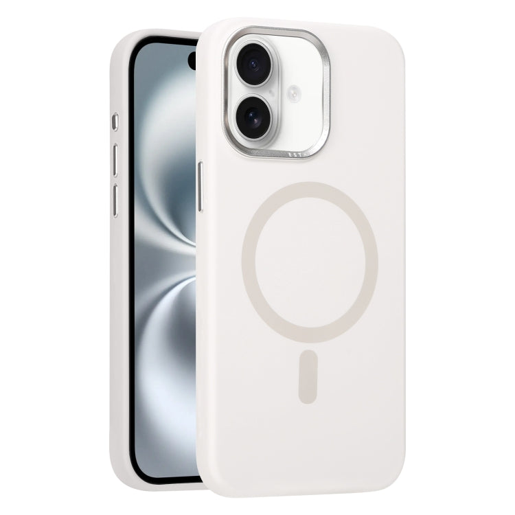 Funda de Silicona Líquida con Marco de Lente de Metal para iPhone 16 Magsafe (Blanca)