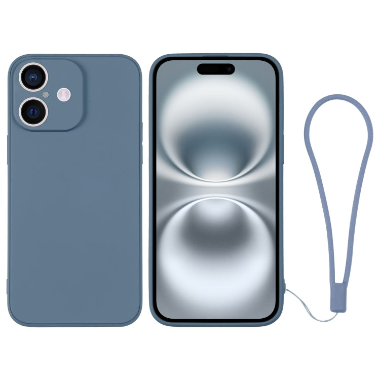 Funda de Silicona para iPhone 16 con Correa para la Muñeca (Gris Azul)