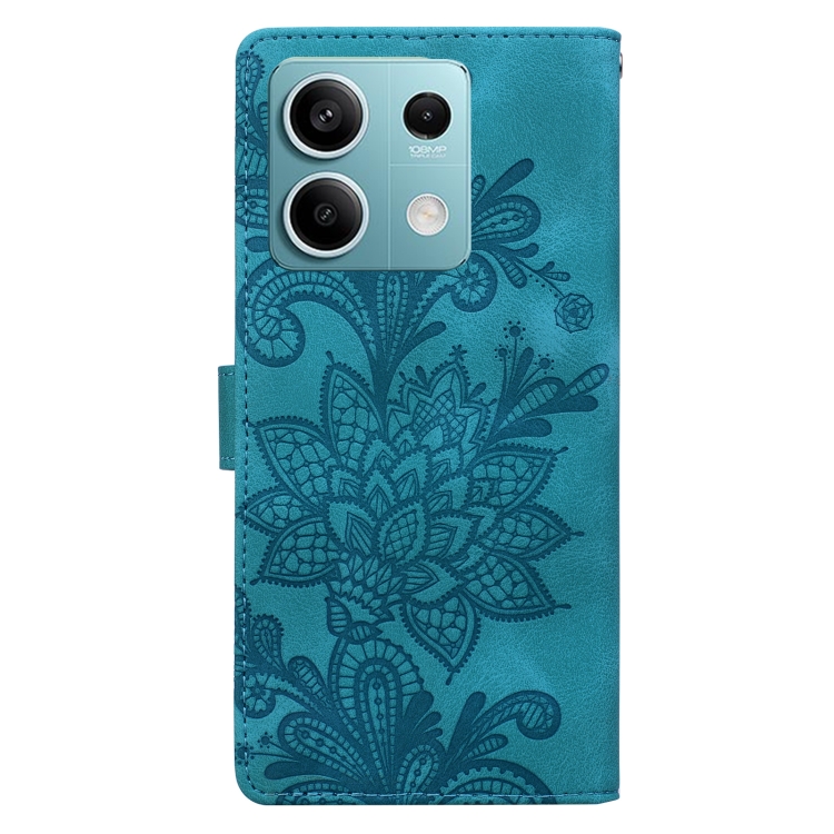 Funda de Teléfono con Hebilla Magnética de Pu con Encaje Floral En Relieve para Redmi Note 14 4G/5G con Correa para la Muñeca (Verde)