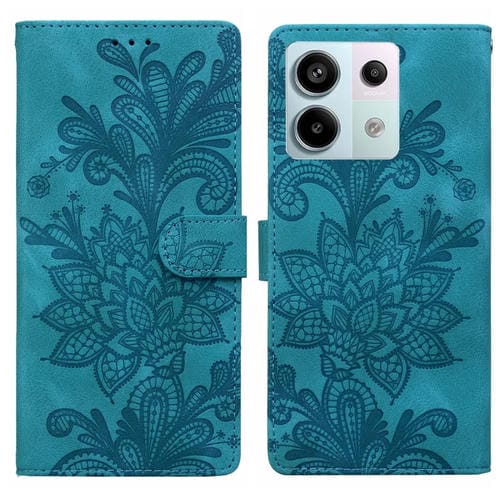 Funda de Teléfono con Hebilla Magnética y Encaje Floral En Relieve para Redmi Note 13 Pro 5G con Correa para la Muñeca (Verde)