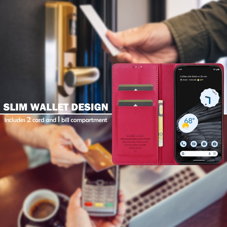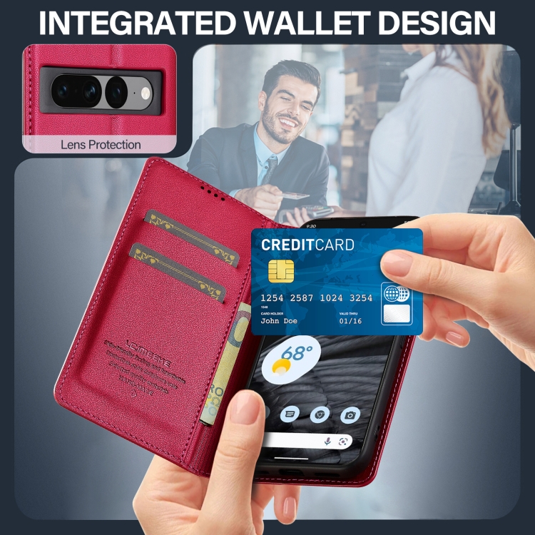 Funda de Teléfono PU Google Pixel 7 5G Lc.Imeeke L1 Series Textura Esmerilada (Roja)