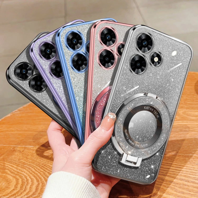 Funda de Teléfono TPU con Soporte Redondo y Purpurina Degradada para Infinix Hot 30 (Rosa)