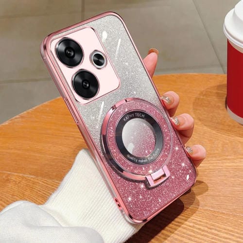 Funda de Teléfono de TPU con Soporte Redondo y Purpurina Degradada para Redmi Turbo 3 (Rosa)