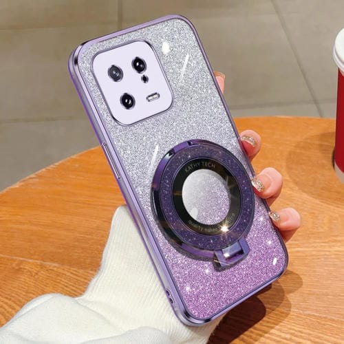 Funda de Teléfono de TPU con Soporte Redondo y Purpurina Degradada Plateada para Xiaomi 13 (Morado)