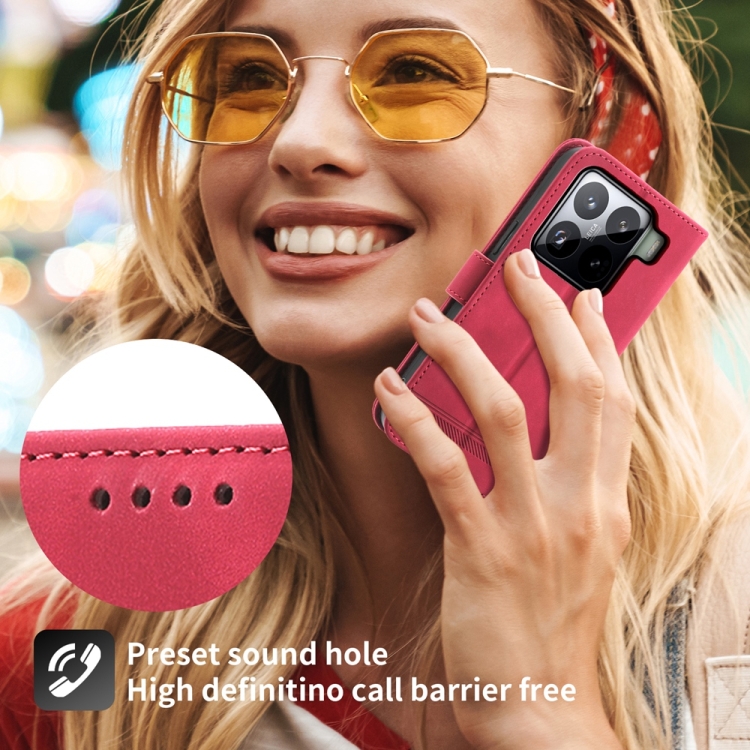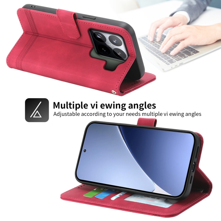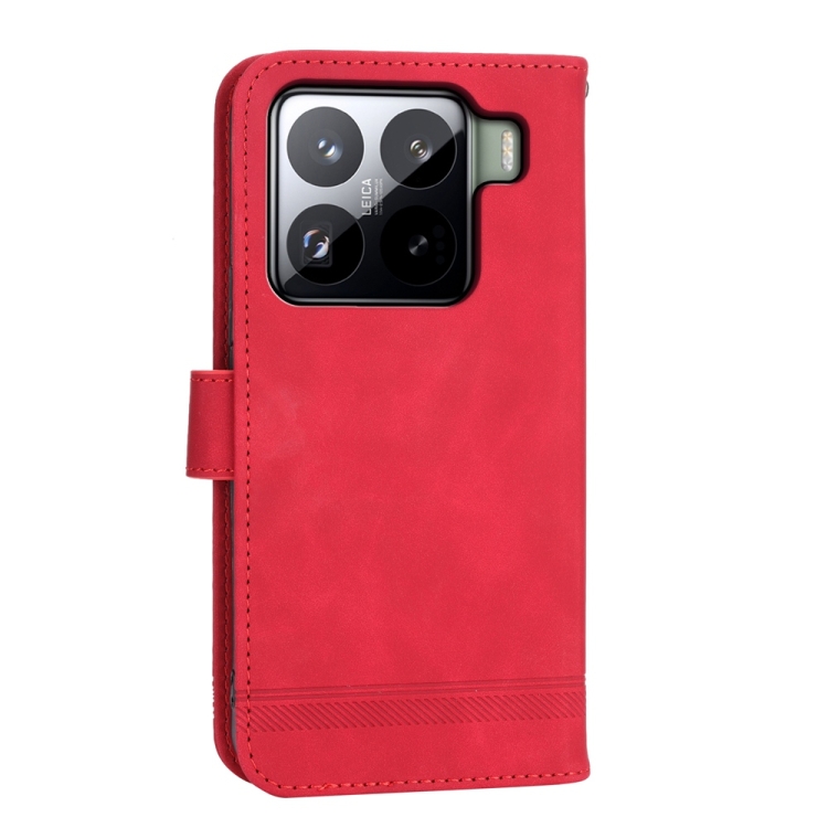 Funda De Teléfono Híbrida De Cuero Pu Y Tpu Dierfeng Dream Line Para Xiaomi 15 (Rojo)