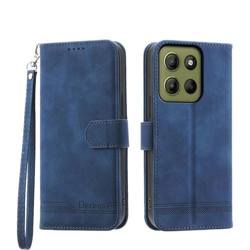 Funda de Teléfono Híbrida Dierfeng Dream Line Cuero PU y TPU para Motorola Moto G15 (Azul)