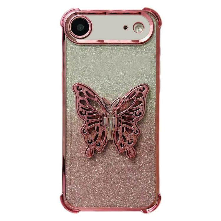 Funda de TPU con diseño de mariposa 3D brillante y galvanizada para iPhone Air, a prueba de golpes, con cuatro esquinas (rosa degradado)