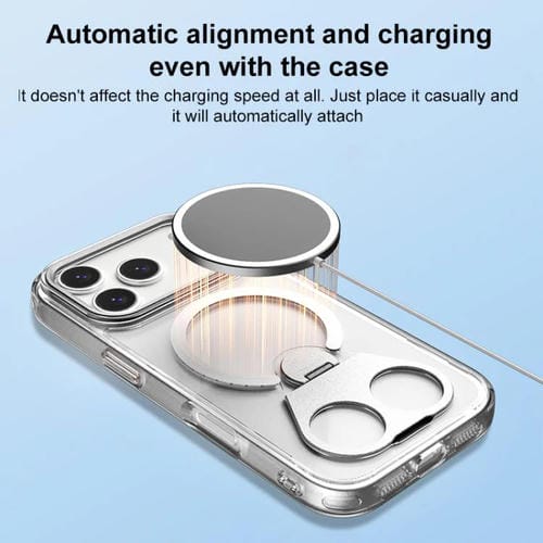 Funda de TPU MagSafe transparente para iPhone 17 con soporte giratorio de 360 grados (rosa)