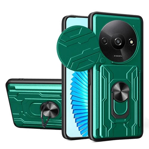 Funda de TPU+PC con Ranura para Tarjetas y Cierre Deslizante para Xiaomi Redmi A3 (Verde Oscuro)