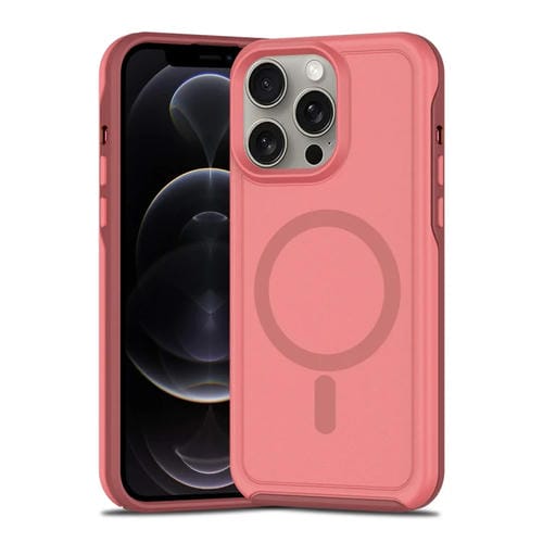 Funda híbrida TPU y PC para iPhone 12 Pro con Protección Magsafe a prueba de golpes (Rosa Oscuro y Granate)