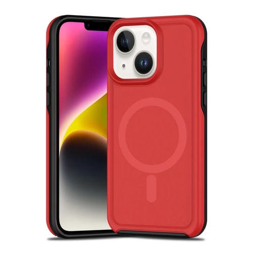 Funda híbrida TPU y PC para iPhone 14 Plus con protección Magsafe a prueba de golpes (Rojo y Negro)
