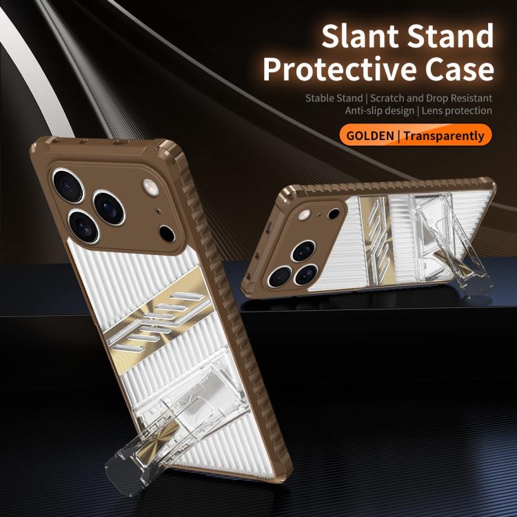 Funda híbrida de TPU y PC con soporte chapado para iPhone 17 Pro Max (dorado desierto)