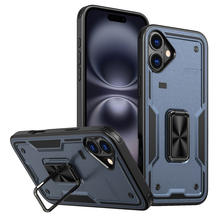 Funda híbrida TPU y PC con soporte para anillo iPhone 16 (Azul Marino)