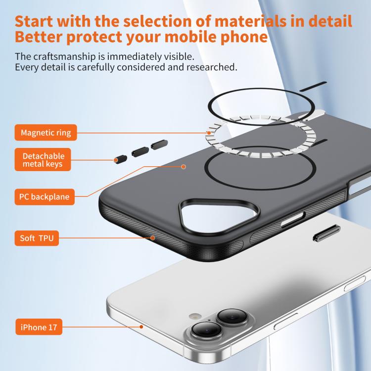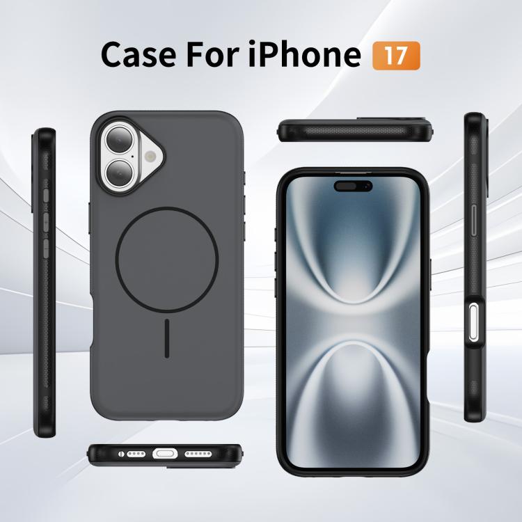 Funda híbrida de TPU y PC para iPhone 17, imitación MagSafe original, bicolor (negra)
