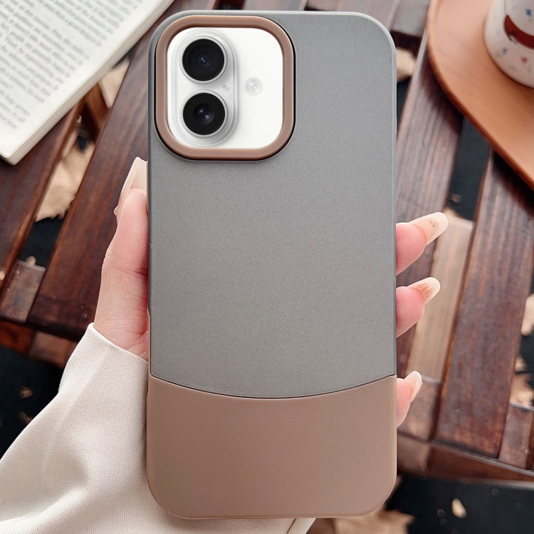 Funda híbrida TPU y Policarbonato para iPhone 16 con Tacto Agradable y Contraste de Color (Gris Oscuro y Marrón)