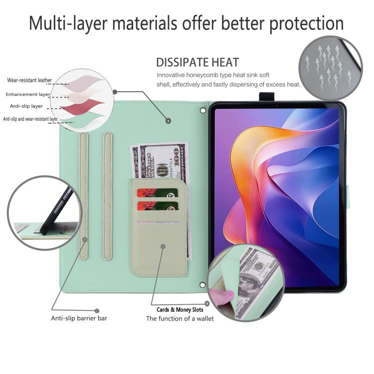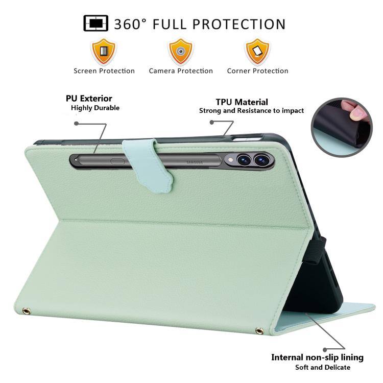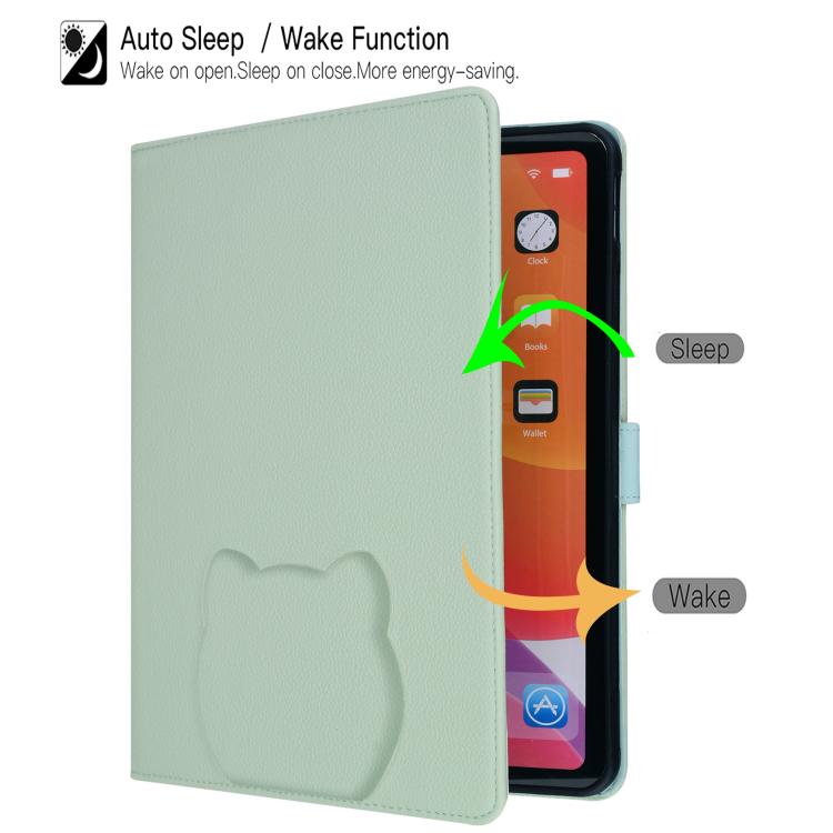 Funda inteligente de piel de lichi con tacto de gato para Samsung Galaxy Tab S10+ / S9+ (verde)