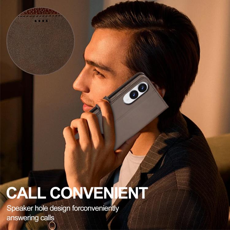 Funda LC.IMEEKE de piel con textura de becerro para Samsung Galaxy S25 Edge 5G (café)