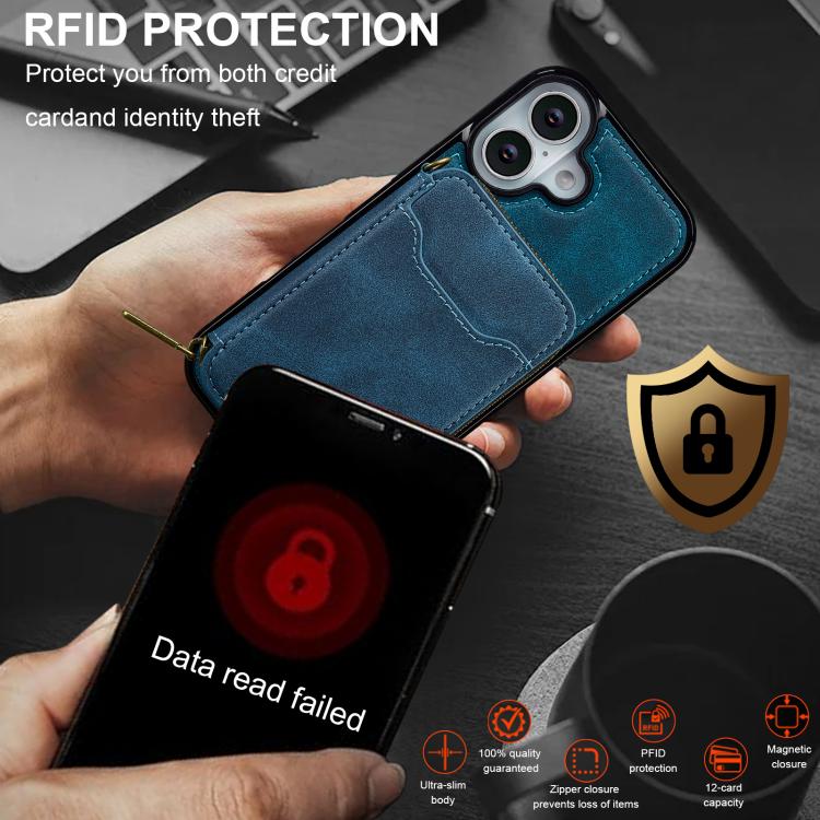 Funda magnética MagSafe para iPhone 17 LC.IMEEKE L6 Series con cremallera y tarjetero (azul)