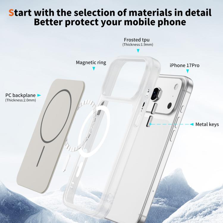 Funda magnética MagSafe para iPhone 17 Pro con tacto de piel esmerilada cristalina (blanca)