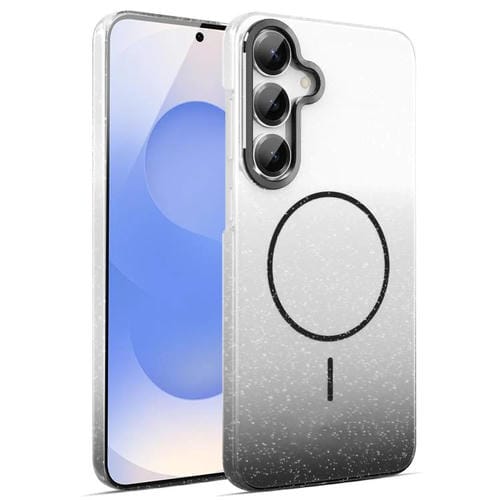 Funda MagSafe a prueba de golpes para Samsung Galaxy S25+ 5G con purpurina dorada y degradado (negro)