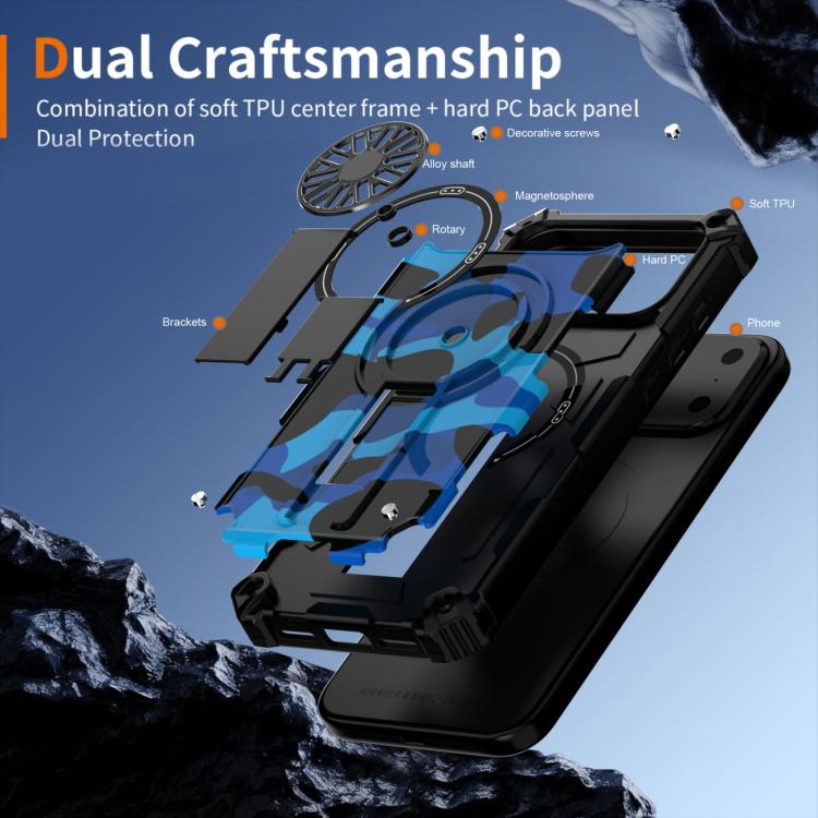 Funda MagSafe con soporte giratorio y diseño de camuflaje para iPhone 17 (camuflaje azul)