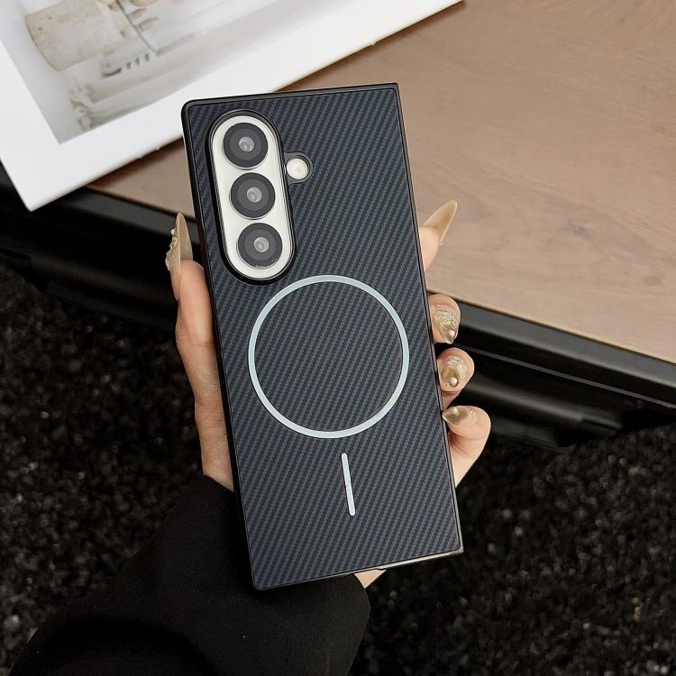 Funda MagSafe con textura de fibra de carbono para Samsung Galaxy Z Fold7 (azul oscuro)
