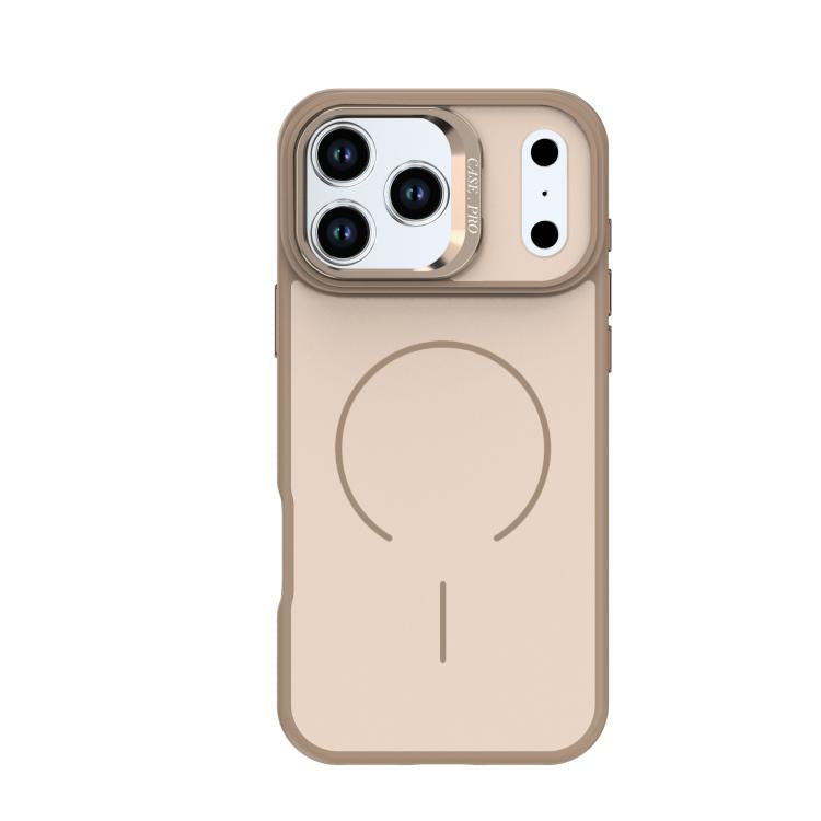 Funda Magsafe para iPhone 17 Pro Max con soporte para cámara y tacto suave en contraste de colores brillantes (dorado desierto)