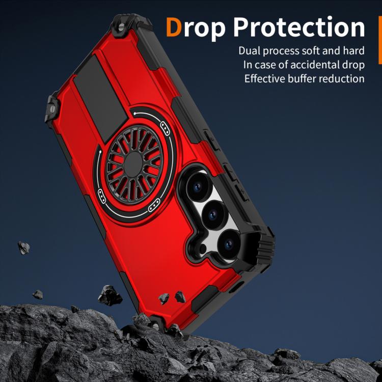 Funda MagSafe para Samsung Galaxy S24 5G con soporte metálico y a prueba de golpes (roja)
