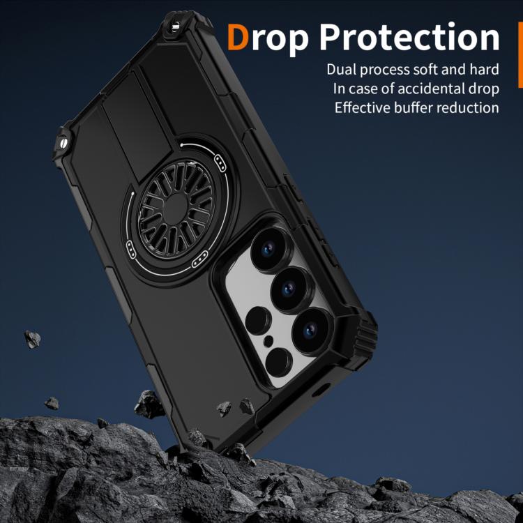 Funda MagSafe para Samsung Galaxy S25 Ultra 5G, a prueba de golpes, con soporte metálico y eje (negro)