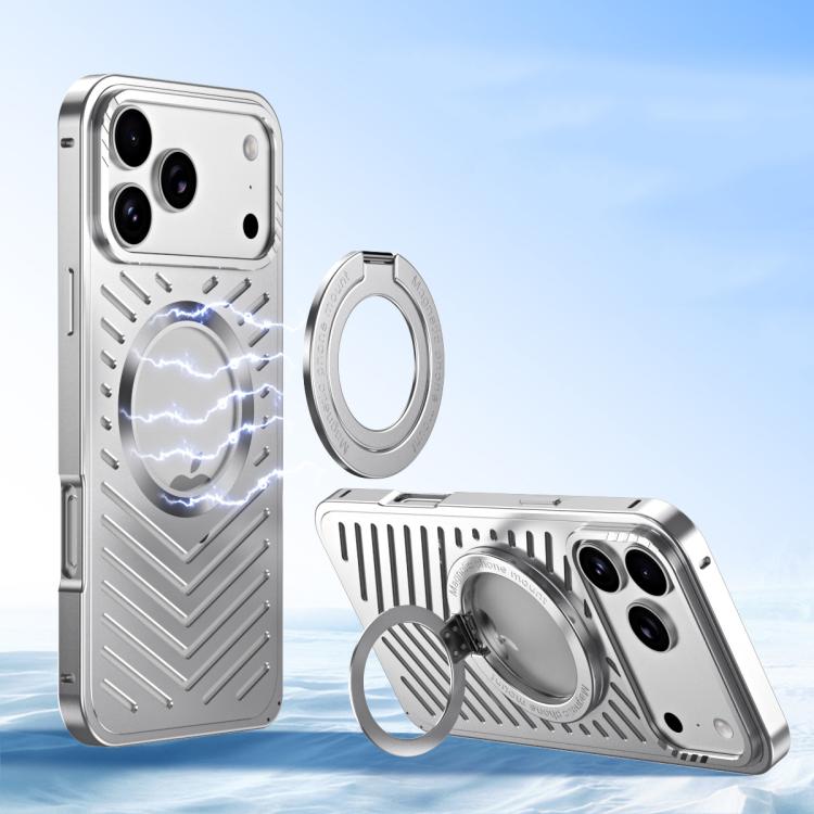 Funda metálica para iPhone 17 Pro Max con soporte magnético MagSafe y refrigeración (titanio)